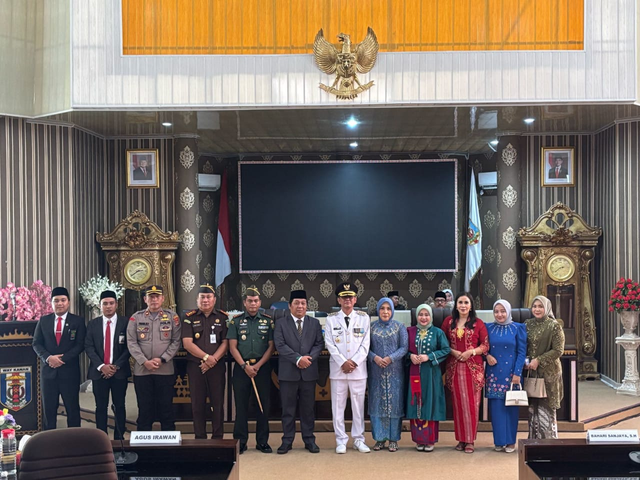 Rapat paripurna ini dipimpin oleh Wakil Ketua II DPRD Kabupaten Way Kanan, Bambang Irawan, serta dihadiri oleh sejumlah pejabat penting, di antaranya Dandim 0427/WK, Kajari Blambangan Umpu, Danlanud AD Garot Soebroto, Skadron 12/AJY dan Wakapolres Way Kanan. Turut hadir pula Kepala BNN Way Kanan, Pj. Sekda Way Kanan, para anggota DPRD, kepala dinas, camat, serta tamu undangan lainnya.