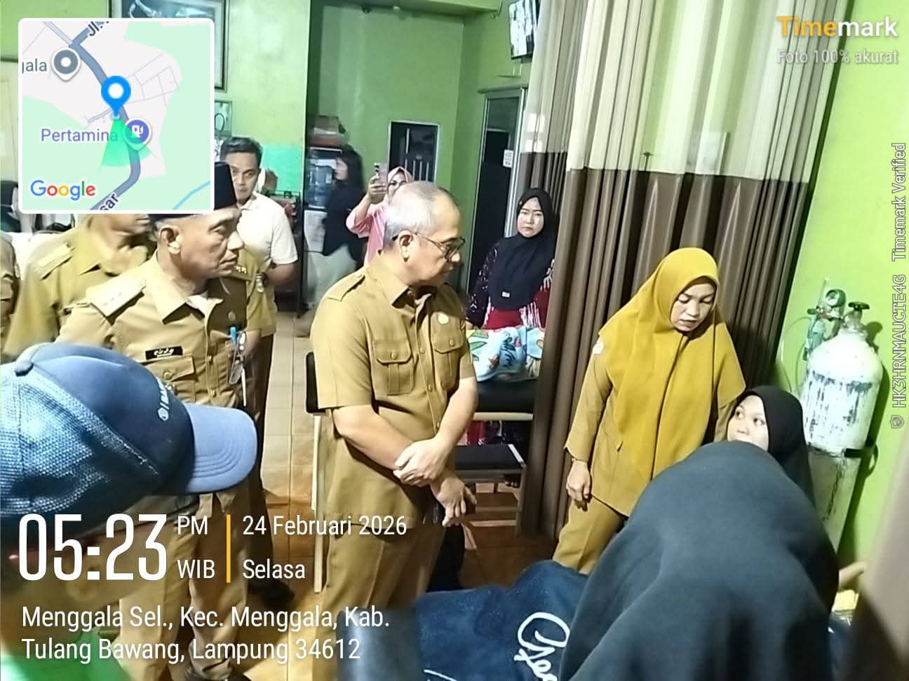 Infolampung.net | Tulangbawang – Disela-sela menunggu waktu berbuka puasa , Sekretaris Daerah Kabupaten Tulang Bawang Ir. Ferli Yuledi , SP . MM . MT , Respon Cepat dalam meninjau langsung kondisi siswa/siswi yang menjadi korban dugaan keracunan Program Makan Bergizi Gratis (MBG) di Kecamatan Menggala. Peninjauan ini dilakukan di Klinik Menggala Medical Centre , Pada Selasa (24/02/26) sekira pukul 17:00 sore hari ini.
